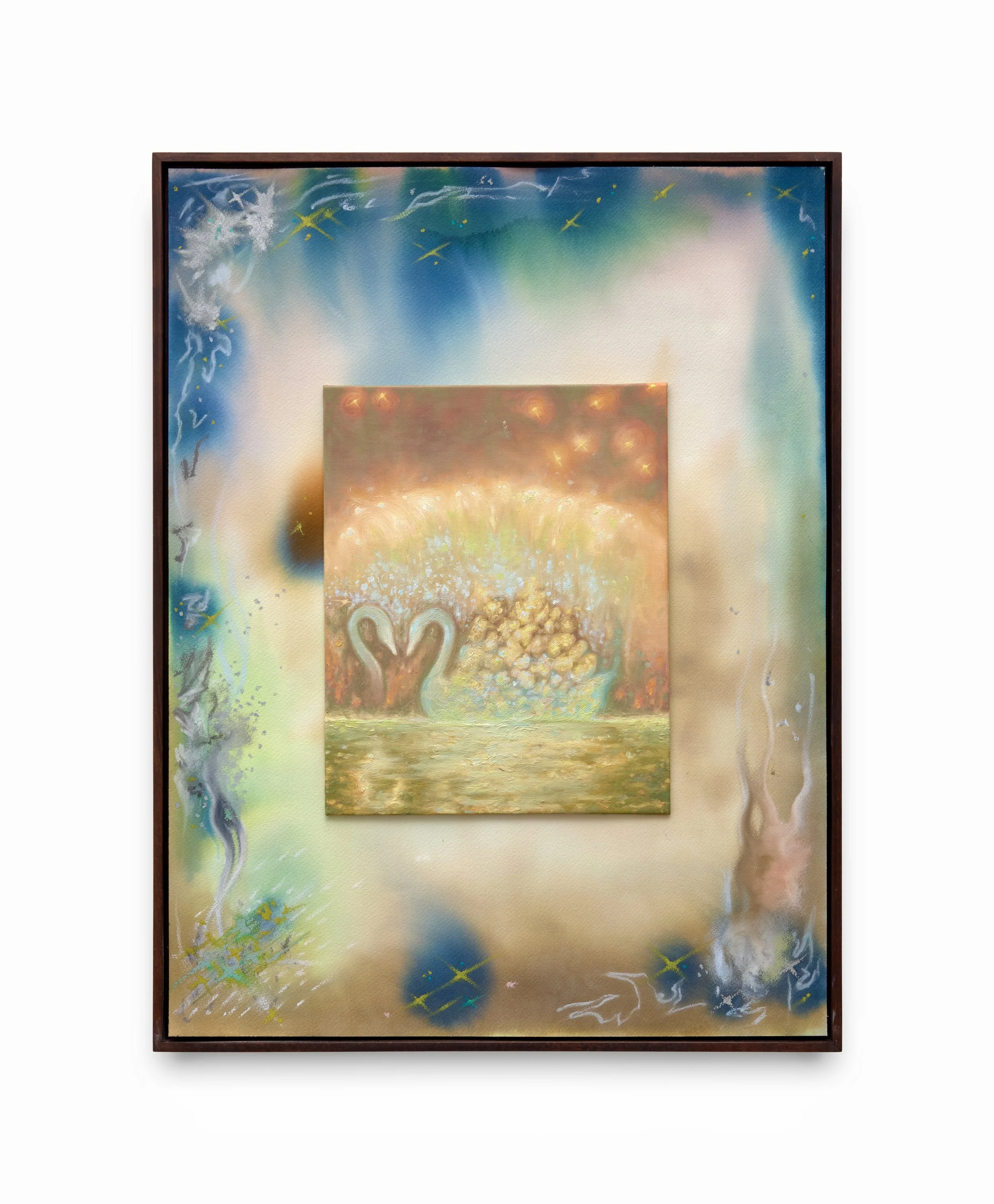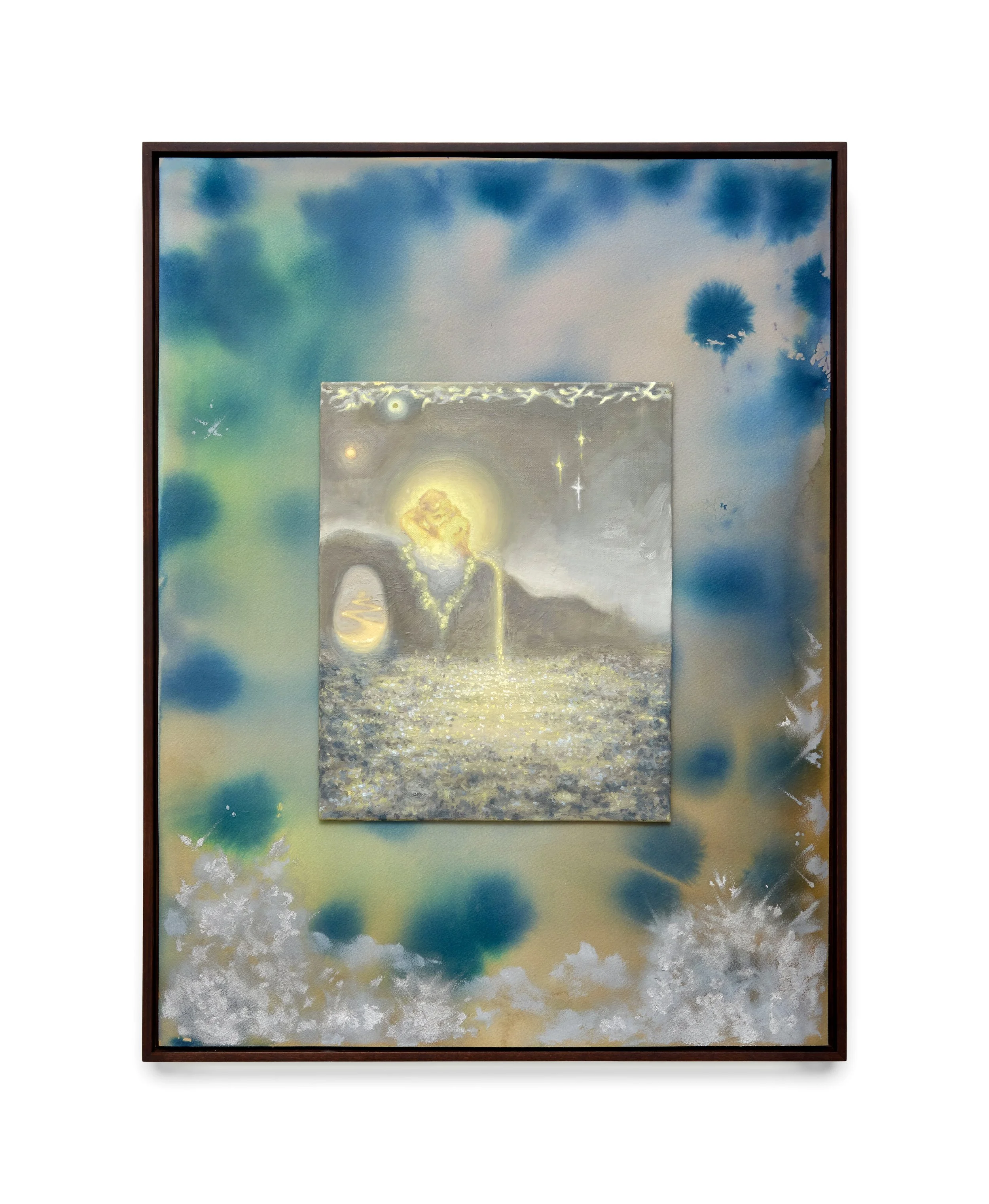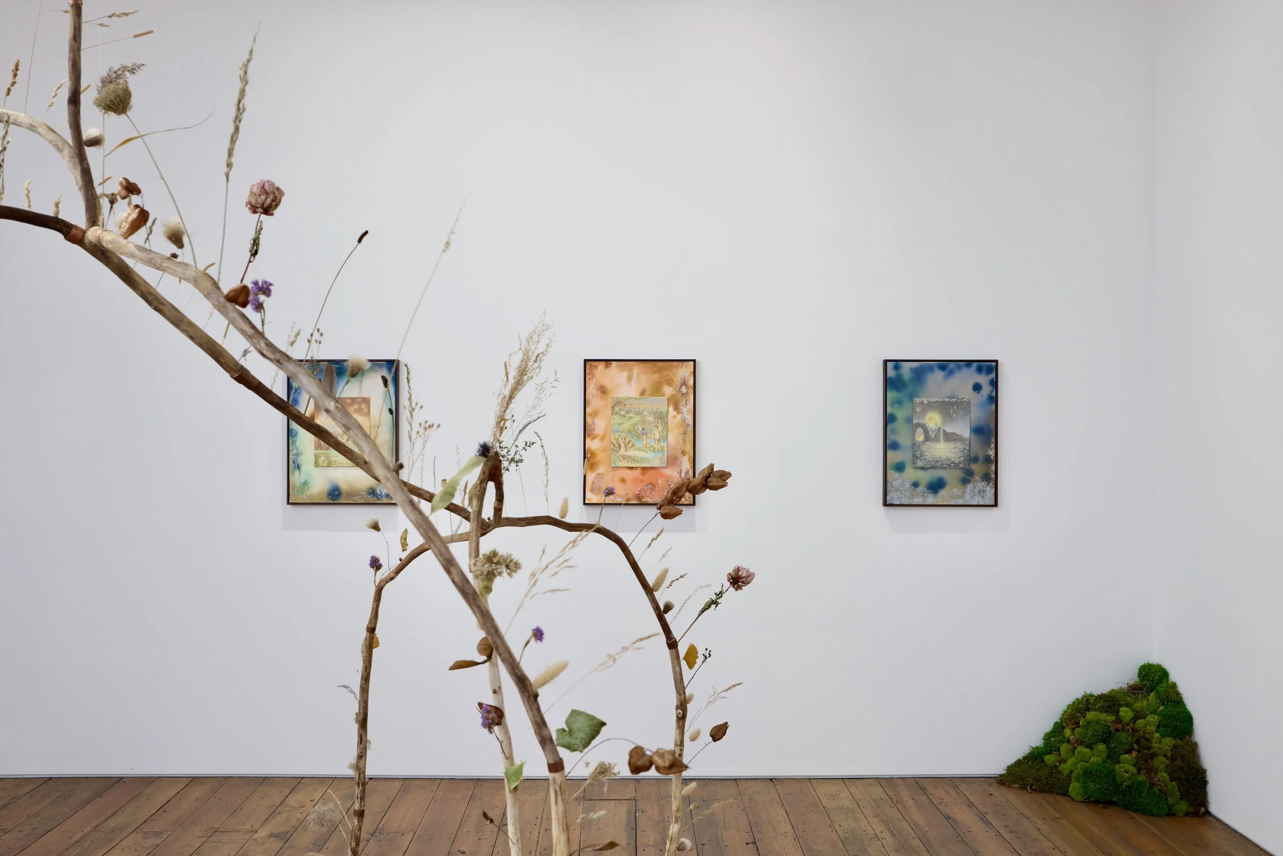 ‘Luminous orbs, floating figures and phosphorescent forms. Delicate Beings, London-based artist fuchsia’s first solo exhibition, transports us into a glittering, oceanic world where hypnotic visions emerge from and dissolve back into the depths. Drawing on the ecological significance and cultural symbolism of corals and shells, fuchsia’s paintings celebrate these ethereal marine invertebrates as powerful sources of light, energy, and life. These works encourage us to reflect on the fragile beauty of marine ecosystems and our spiritual connection to the sea.’ - Millie Walton